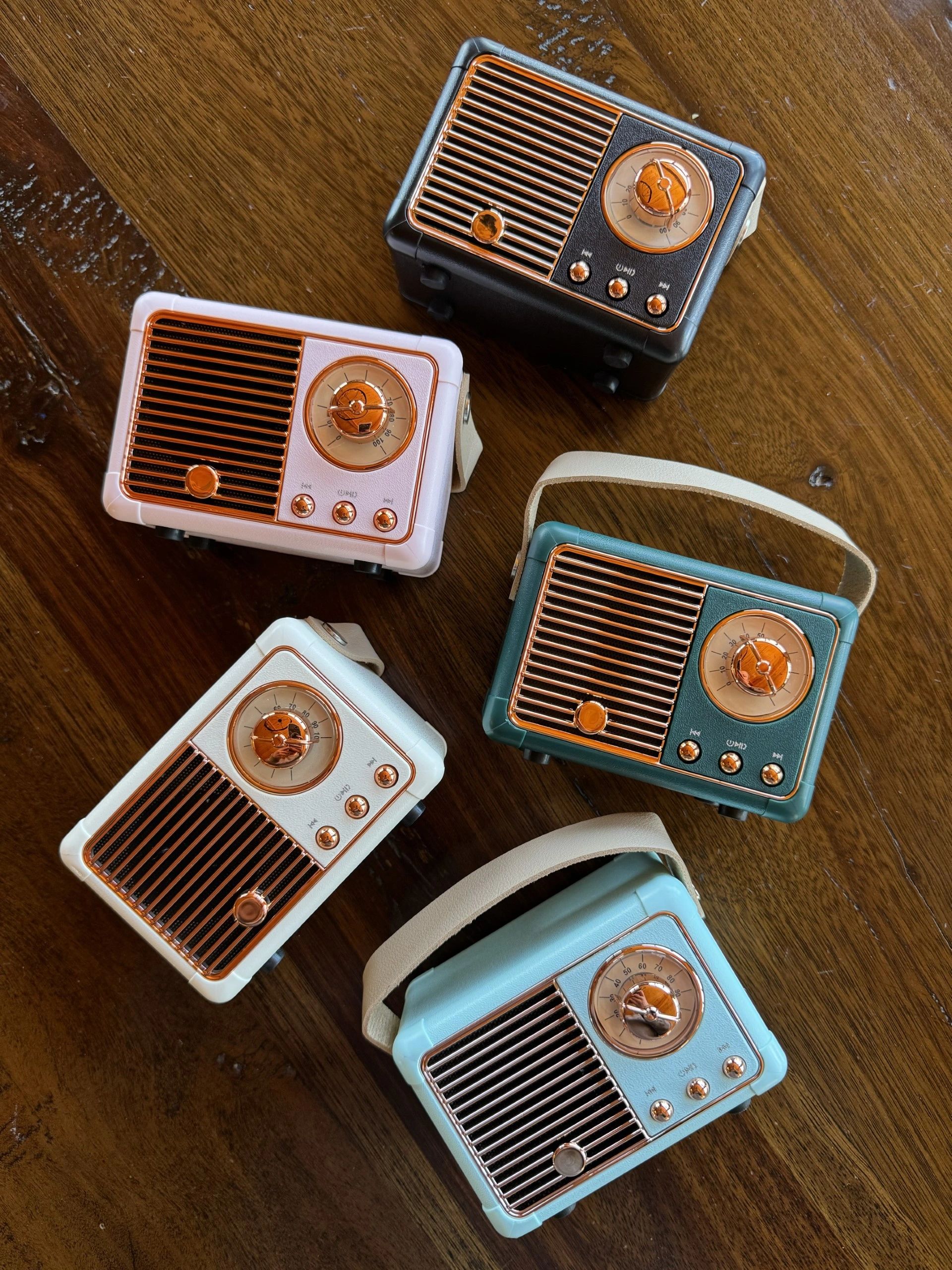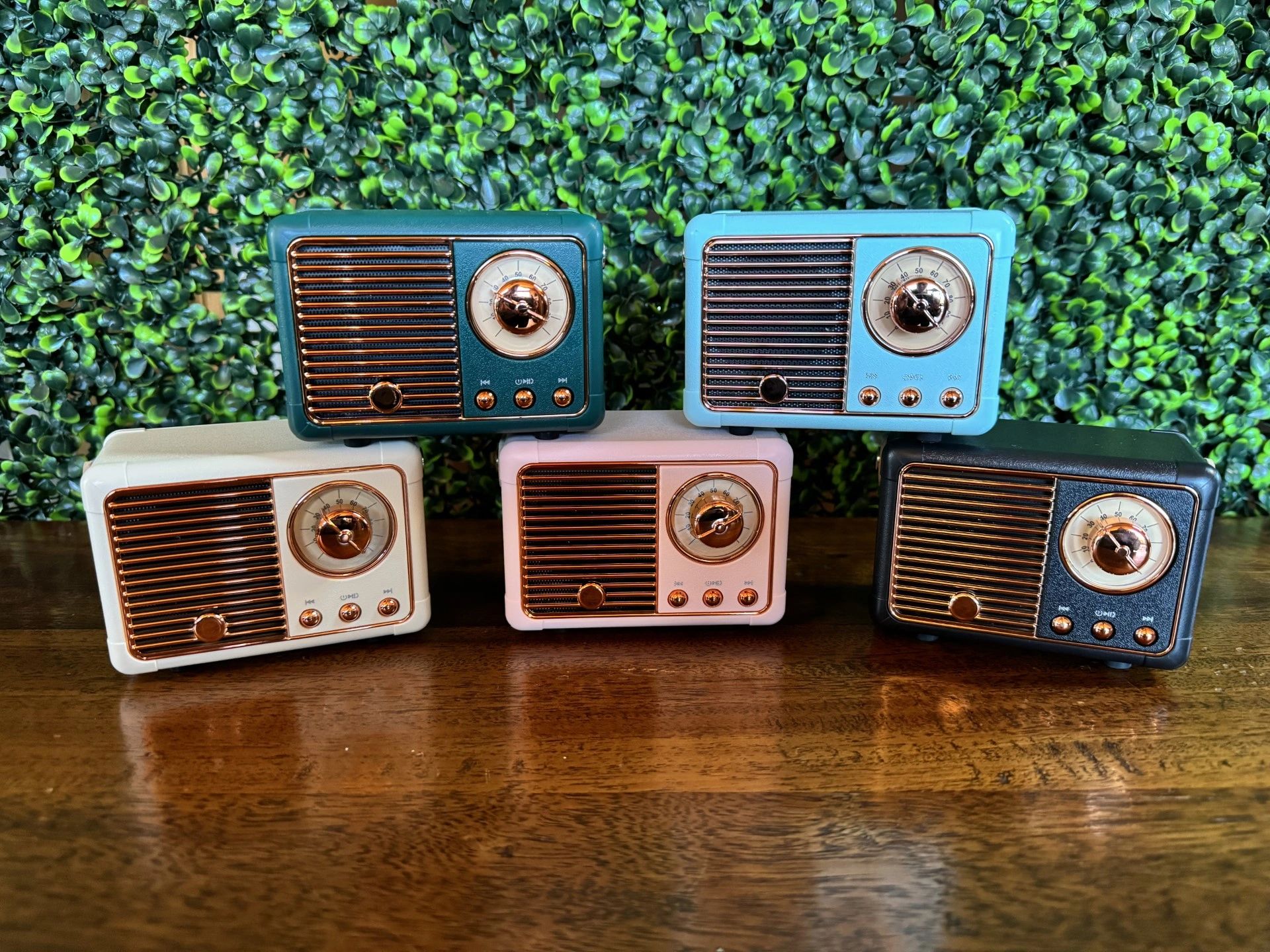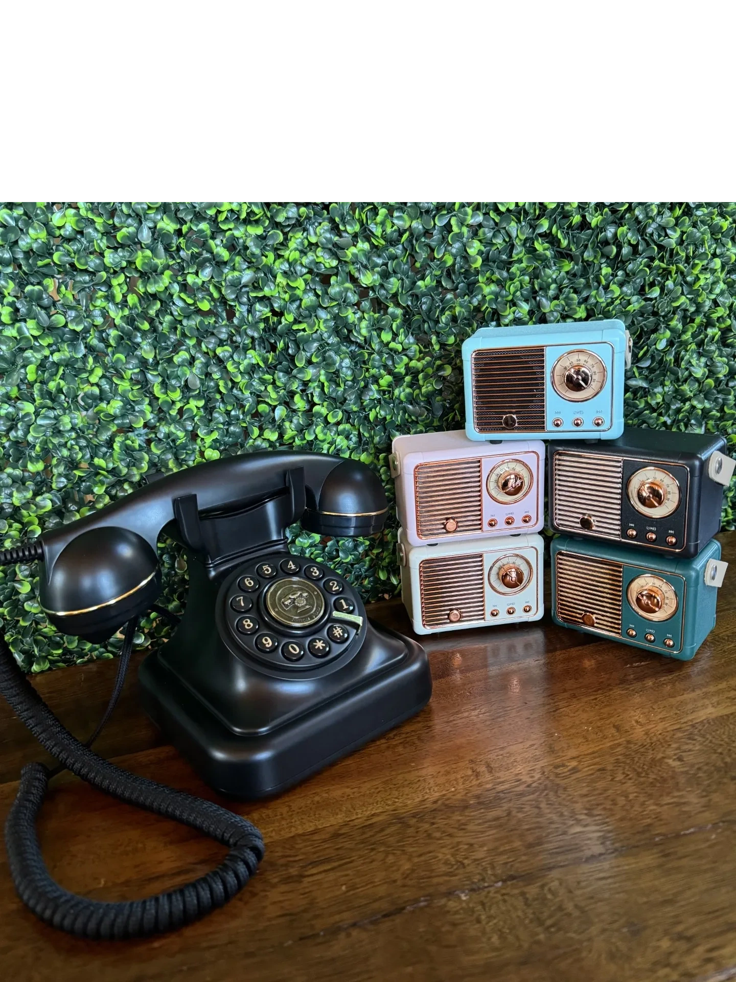 When you book the Memory Phone audio guestbook, you can add on one of our miniature vintage speakers to take home and enjoy forever. Our mini speakers allow you to kick back and relive all your messages on repeat, without the need to turn on a computer! Speakers are fully battery powered and easily rechargeable using the included USB cable, which allows you to listen anywhere! Your audio messages can be preloaded for easy playback at the touch of a button.